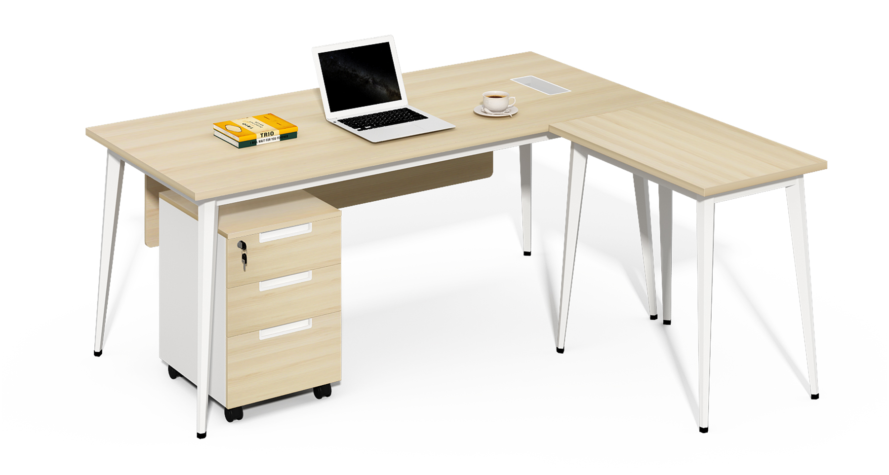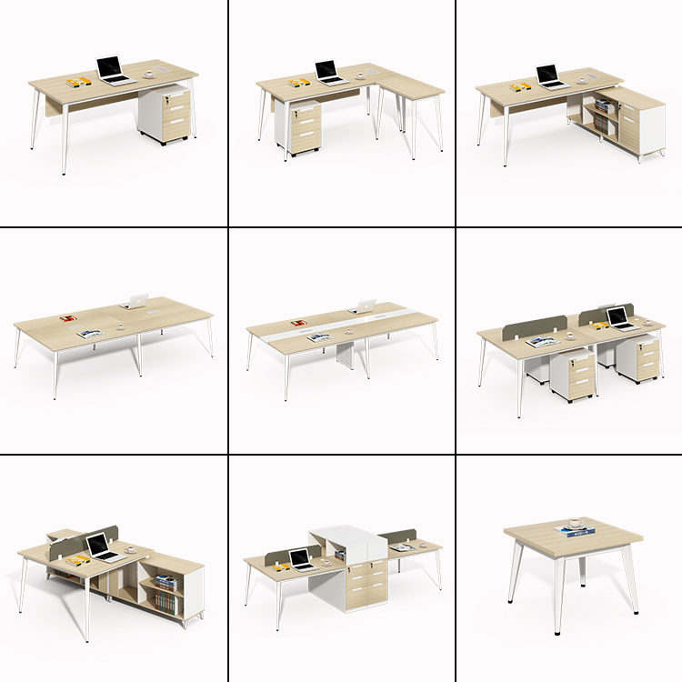 This is a popular and simple - style office series launched by Xusheng Furniture in 2023. It is suitable for various office scenarios, such as furniture stores, office buildings, schools, government buildings, high - end shopping malls, and all kinds of workplaces. The main body of the office desk uses a metal table frame as the main support, and the desktop is made of E0 - grade environmentally friendly boards. The color and pattern of the board are melamine - faced particleboard imitating oak color, which not only enhances the natural feeling of the entire office desk but also provides professional